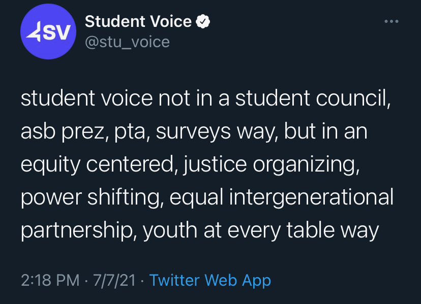 As the school system’s primary stakeholder, students deserve a voice in education policy, but a national movement needs an outcome that goes deeper than just getting students at the table. What are they demanding once they have a seat? At its most harmful, calling for youth and community voice without an accompanying agenda leaves students vulnerable to having their voices tokenized and co-opted by forces that are not values-aligned.